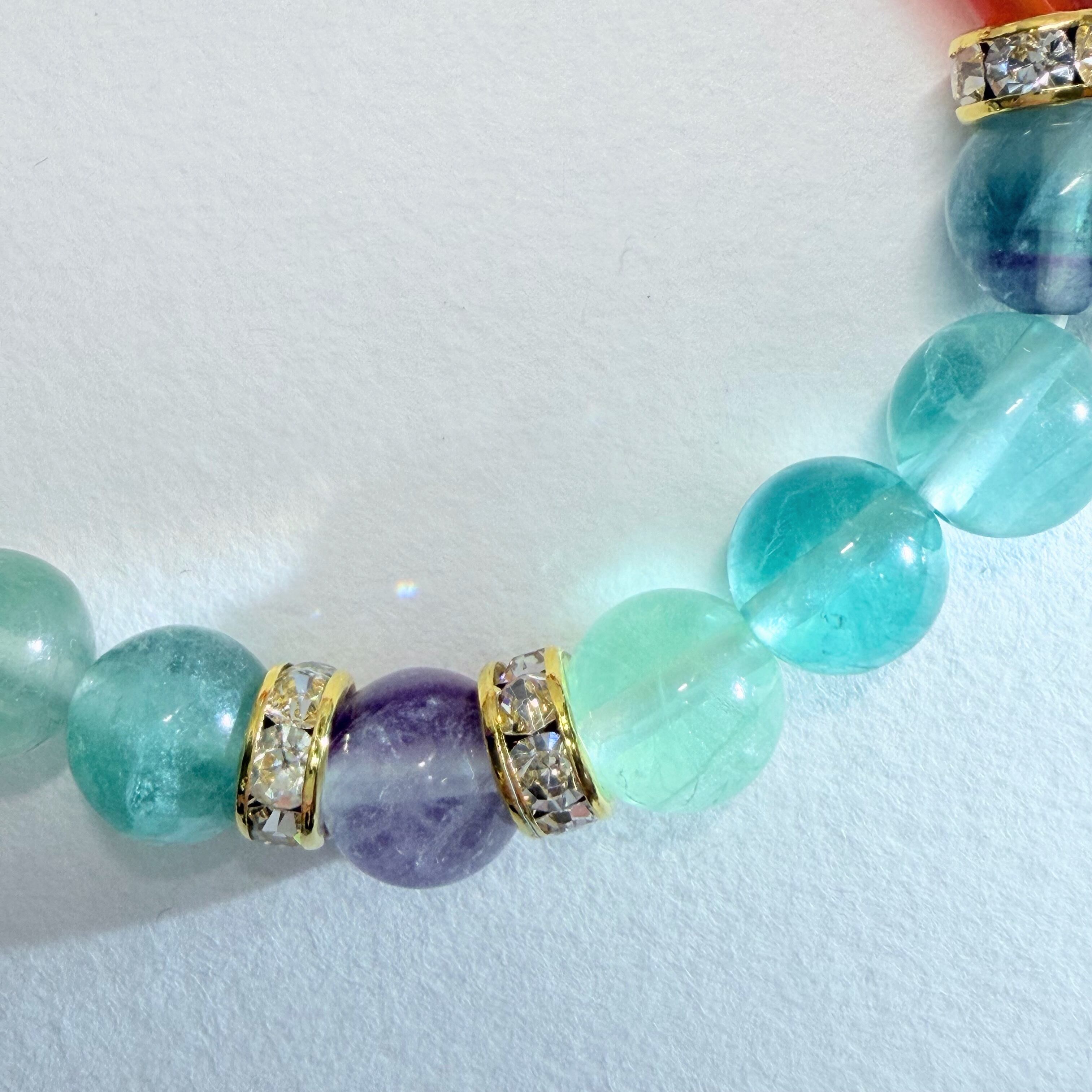 natural stone bracelet14 マルチカラーフローライト✖️クォーツ✖️カーネリアン